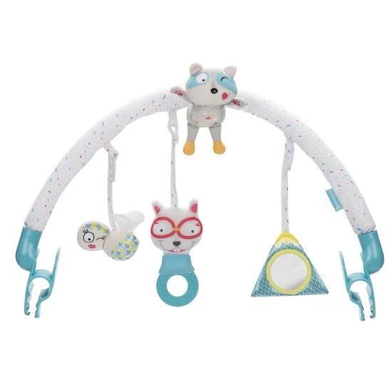 Universelle : s’adapte à tous les supports grâce à ses 2 pinces rotatives à 360°Multi-activités : Miroir, peluche, anneau de dentition, hochet …