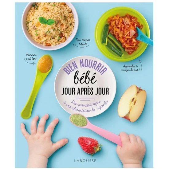 Des premiers repas à une alimentation de grand Un guide d’initiation à la diversification qui permet d’installer progressivement et en douceur une alimentation variée. Jour après jour, des menus spécifiques pour chacune des 3 étapes proposées :jusqu’à 7 mois, de 7 à 9 mois et de 9 à 12 mois , puis de la petite enfance à l’entrée en maternelle. 200 recettes variées : d’abord de simples purées de légumes et de fruits, puis des mélanges de plusieurs aliments qui vont ensuite évoluer vers des textures avec morceaux, jusqu’aux recettes familiales !