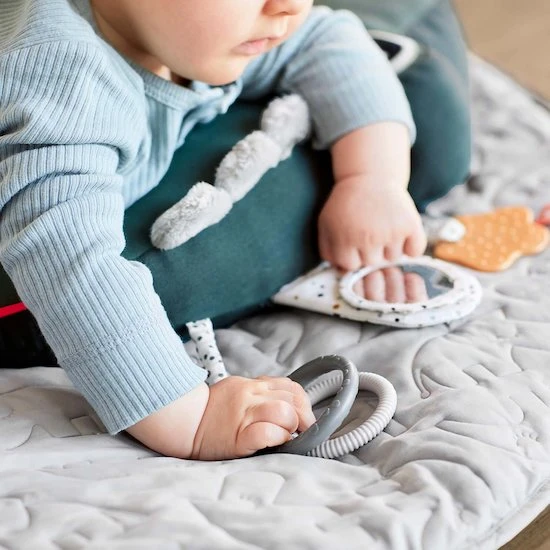 Avec Croco, votre petit va adorer jouer sur le ventre. Le coussin de motricité aidera votre bébé à renforcer les muscles de sa nuque et de son dos et servira en même temps de jeu d’éveil amusant. Le jeu d’activité a été conçu avec beaucoup de fonctions sensorielles pour encourager votre bébé à rester plus longtemps et plus activement sur le ventre. Avec l’anneau de dentition et d’autres anneaux pour apaiser les gencives, les différentes textures , un petit miroir, les étiquettes, le bruit de papier froissé et le ventre vibrant du crocodile, l’enfant aura plein d’activités à explorer!