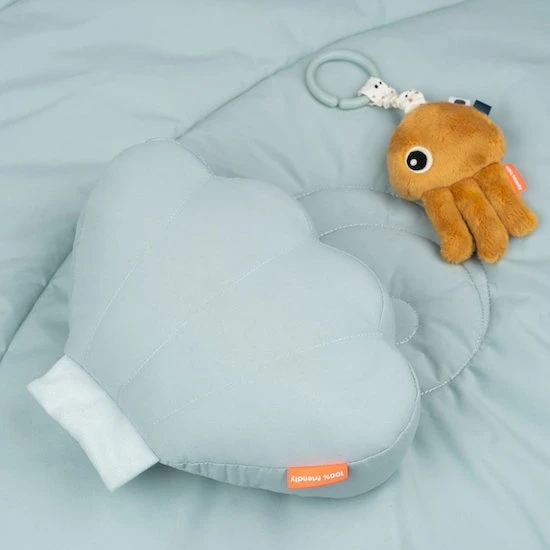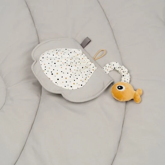 Le tapis d’éveil à la forme d’un poisson-globe accueillera confortablement votre enfant pour qu’il s’amuse avec les Sea friends. La douce nageoire caudale de Puffee est amovible et peut servir de support quand bébé s’entraîne sur le ventre. Votre enfant pourra découvrir le bruissement de Jelly, la douce clochette de Wally, les petits poissons se cachant sous la nageoire de Puffee et le miroir sur l’étoile de mer. Les jouets et le miroir peuvent facilement changer de place sur l’arche. Ce jouet vous accompagnera longtemps : bébé commencera par explorer les jouets sur l’arc, puis s’amusera en position ventrale et, enfin, s’assiera pour jouer à cache-cache avec les poissons. Le tapis est gris avec des éléments contrastants moutarde.