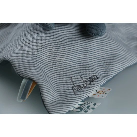 Grâce à son attache en velcro, le doudou Paco en 100% coton BIO de la collection Iconiques s’attache facilement à la manche du pyjama Noukie’s ou à la sucette.