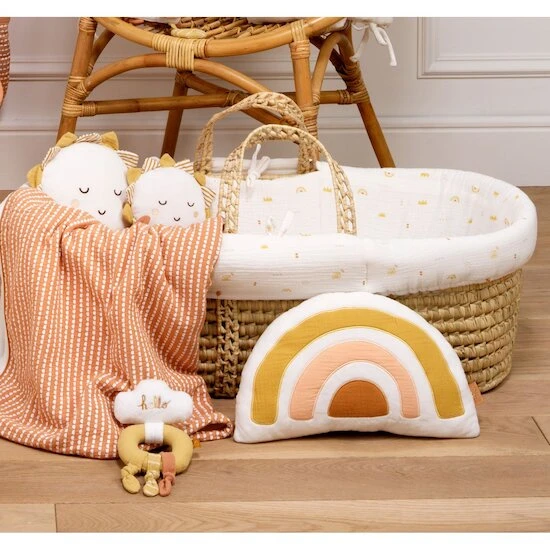 - Ce hochet en tissu en forme d’anneau et avec ses petites nouettes permet un prise en main facile, même pour les petites mains de bébé.
