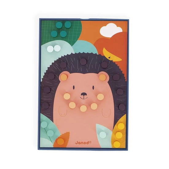 Partez à la découverte des couleurs et de leur nuances grâce à ces jolis tableaux. Votre enfant développera son imagination tout en apprenant les couleurs avec ces mosaïques en bois. La manipulation des petites pièces permet le développement de la motricité fine. Contient 7 cartes perforées et 70 pièces en bois. Malin ! La boîte sert aussi de chevalet où déposer les cartes.Jouet d’éveil et d’apprentissage pour les enfants à partir de 3 ans.