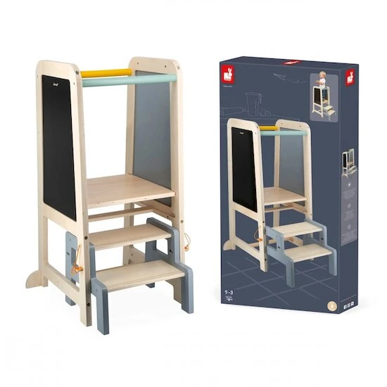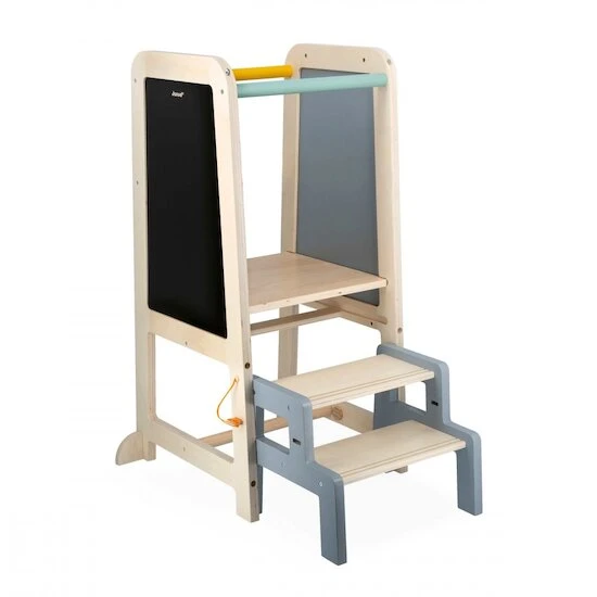 La tour d’observation en bois conçue par Janod est idéale pour accompagner votre enfant dans sa prise d’autonomie. Il pourra assister à toutes les activités du quotidien et lui permettre de développer plus facilement sa motricité fine et son interaction avec les autres. La tour a aussi un côté ludique grâce au tableau noir situé sur le côté.