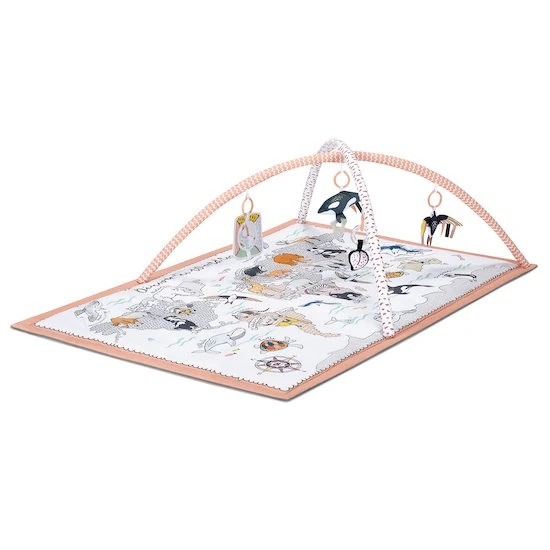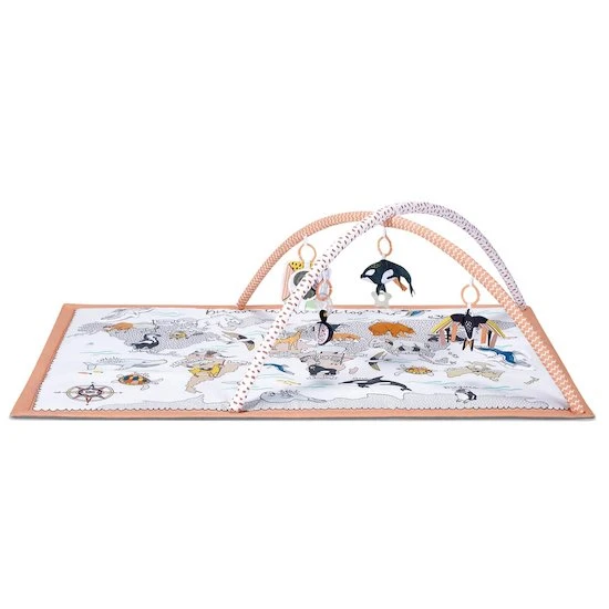 - Tapis de jeu imprimé avec carte du monde et animaux (nommés en anglais).