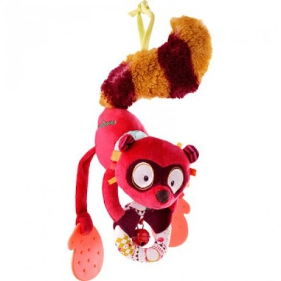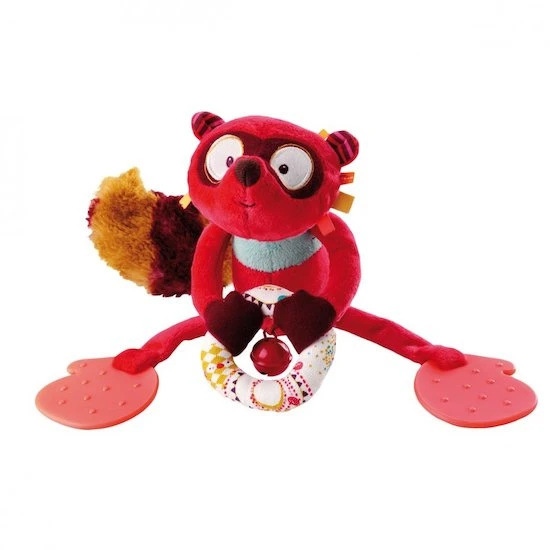 Une fois suspendu, Georges le hochet Clap Clap pourra soulager les gencives douloureuses de bébé avec ses anneaux de dentition au bout des pattes.