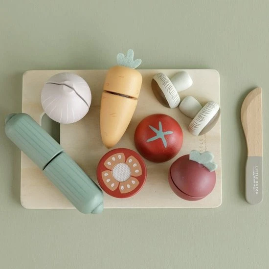 Laissez votre enfant endosser sa toque de grand chef grâce au set de légumes à découper Little Dutch. Un jouet en bois idéal pour développer son imagination et cuisiner de belles recettes.