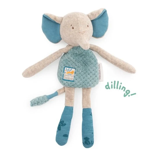 - En secouant son doudou, les petites billes présentes dans la tête de l’éléphant produiront un doux bruit qui amusera bébé.