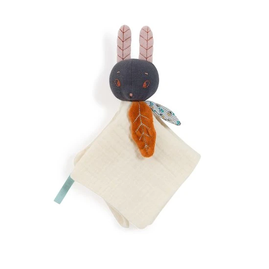 Cet adorable lapin et son joli minois brodé de fil cuivré accompagnera bébé dans tous ses déplacements.