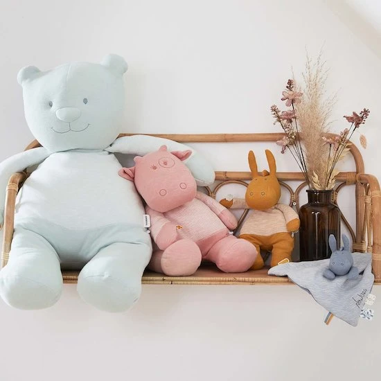 La peluche Nouky aqua en coton bio de la collection Iconiques est destinée à réconforter bébé lors de gros chagrin. Le conseil de Noukie’s: la maman peut imprégner la peluche de son odeur en dormant avec.ls een eerste cadeau of als zachte knuffels voor jong en oud.
