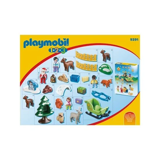 Plongez dans la magie de Noël avec Playmobil 1.2.3, le Calendrier de l’Avent 1.2.3 Père Noël Animaux. Composé de 24 fenêtres à ouvrir chaque jour, votre enfant crée une mise en scène complète jusqu’à Noël tout en assemblant d’adorables figurines et de nombreux accessoires.