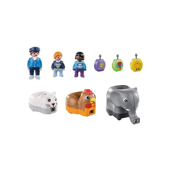 Avec Playmobil 1.2.3, le Train des animaux, votre enfant imagine et crée ses premières histoires. Colorés et avec des formes arrondies, les PLAYMOBIL 1.2.3 favorisent la créativité, la motricité, le développement du langage, la compréhension et la sociabilité de l’enfant.