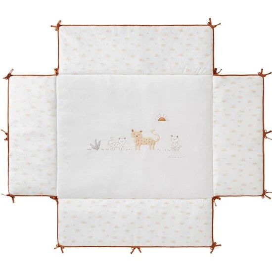 - Ce tapis de parc aux couleurs sobres est brodé sur le fond de Kendi la jolie léoparde. Très élégant, il trouvera sa place dans tous les intérieurs.