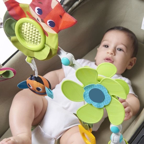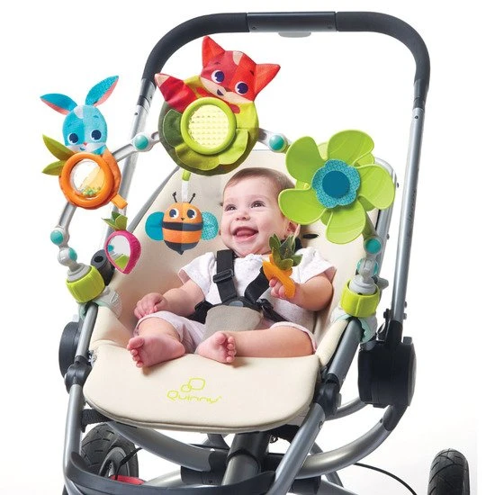 L’arche de poussette articulée Dans la prairie permet à bébé de se promener tout en s’amusant avec les petits personnages qui favorisent la motricité fine et le développement.